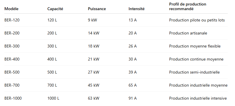 La gamme couvre des capacités de 120 à 1000 litres, permettant de sélectionner l’équipement le plus adapté.